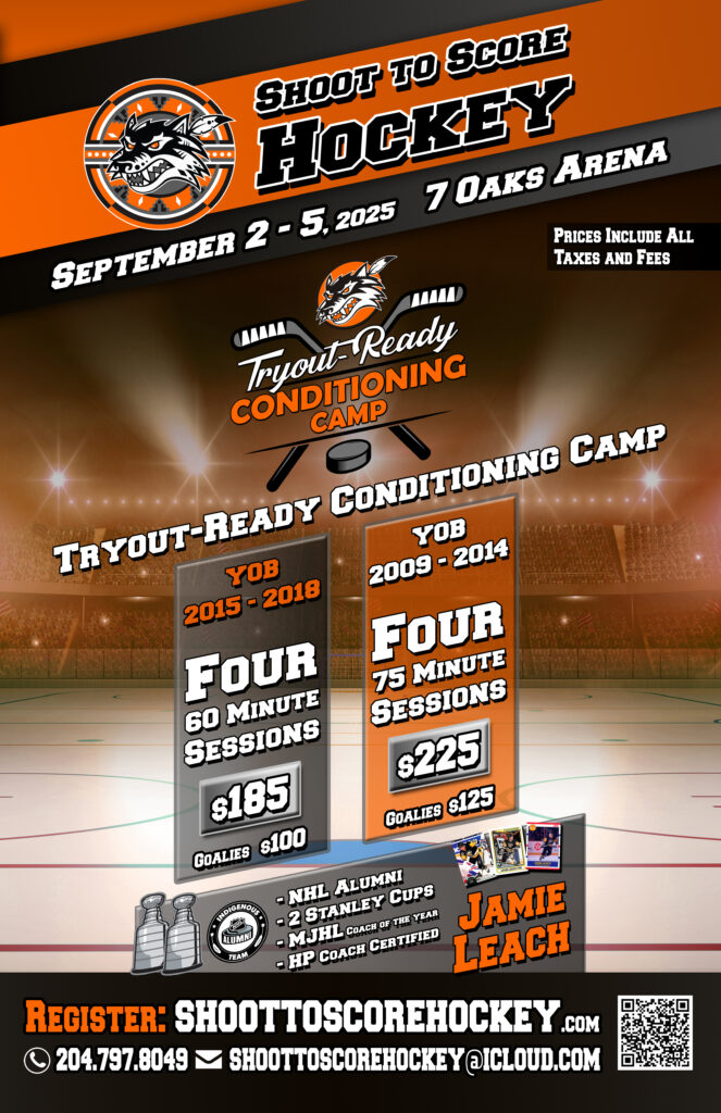 Shoot to Score Hockey is pleased to announce the very popular Try-Out Ready Conditioning Camp at the Seven Oaks Arena in Winnipeg!