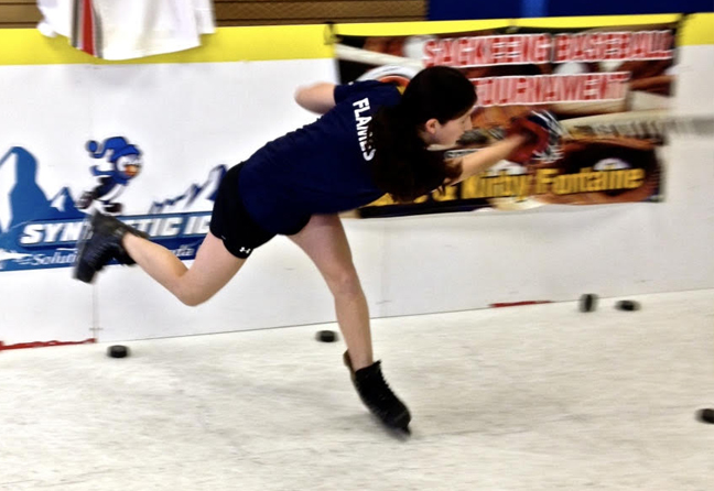 *Take a picture of the player’s stick length (with skates on, standing tall, eyes level, with the stick positioned in front of the player’s face). Provide the flex number of the stick that the player was using in the video.*