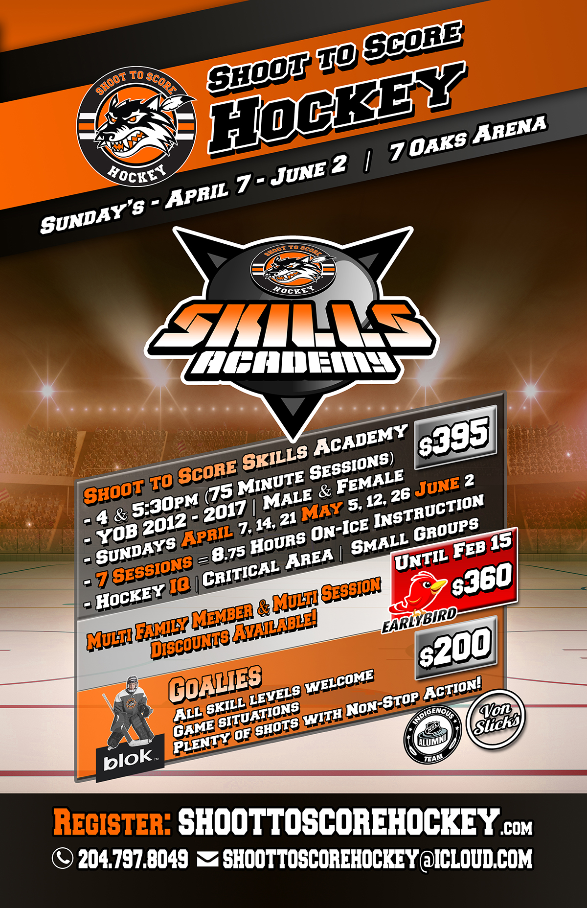 Shoot to Score is offering another Spring Skills Academy (April – June) operating out of the Seven Oaks Arena in Winnipeg, MB!