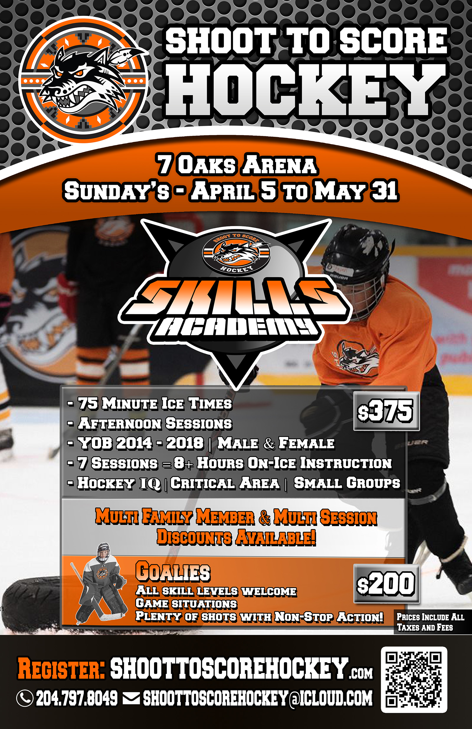 Shoot to Score is offering another Spring Skills Academy (April – June) operating out of the Seven Oaks Arena in Winnipeg, MB!
