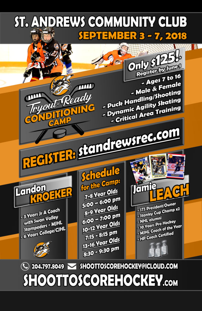 This event has passed. All Events St. Andrews, MB September 3, 2018 - September 7, 2018 | $150 Event Navigation « Big Stone, AB Peguis, MB » September 3-7, 2018 Related Details Start: September 3, 2018 End: September 7, 2018 Cost: $150 Website: http://www.standrewsrec.com/default.asp?ID=18&Sub_ID=422&Sub2_ID=0 Organizer Shoot to Score Hockey Phone (204) 797-8049 Email shoottoscorehockey@icloud.com Venue St. Andrews Community Cub 28 St Andrews Rd Saint Andrews, MB R1A 2Y1 Canada Add to calendar Google Calendar iCalendar Outlook 365 Outlook Live Coaches Landon Kroeker Jaret Sobkowicz Jamie Leach Previous Big Stone, AB Next Peguis, MB Leave a comment Cancel reply You must be logged in to post a comment. This site uses Akismet to reduce spam. Learn how your comment data is processed. Leave a ReplyYou must be logged in to post a comment. This site uses Akismet to reduce spam. Learn how your comment data is processed.