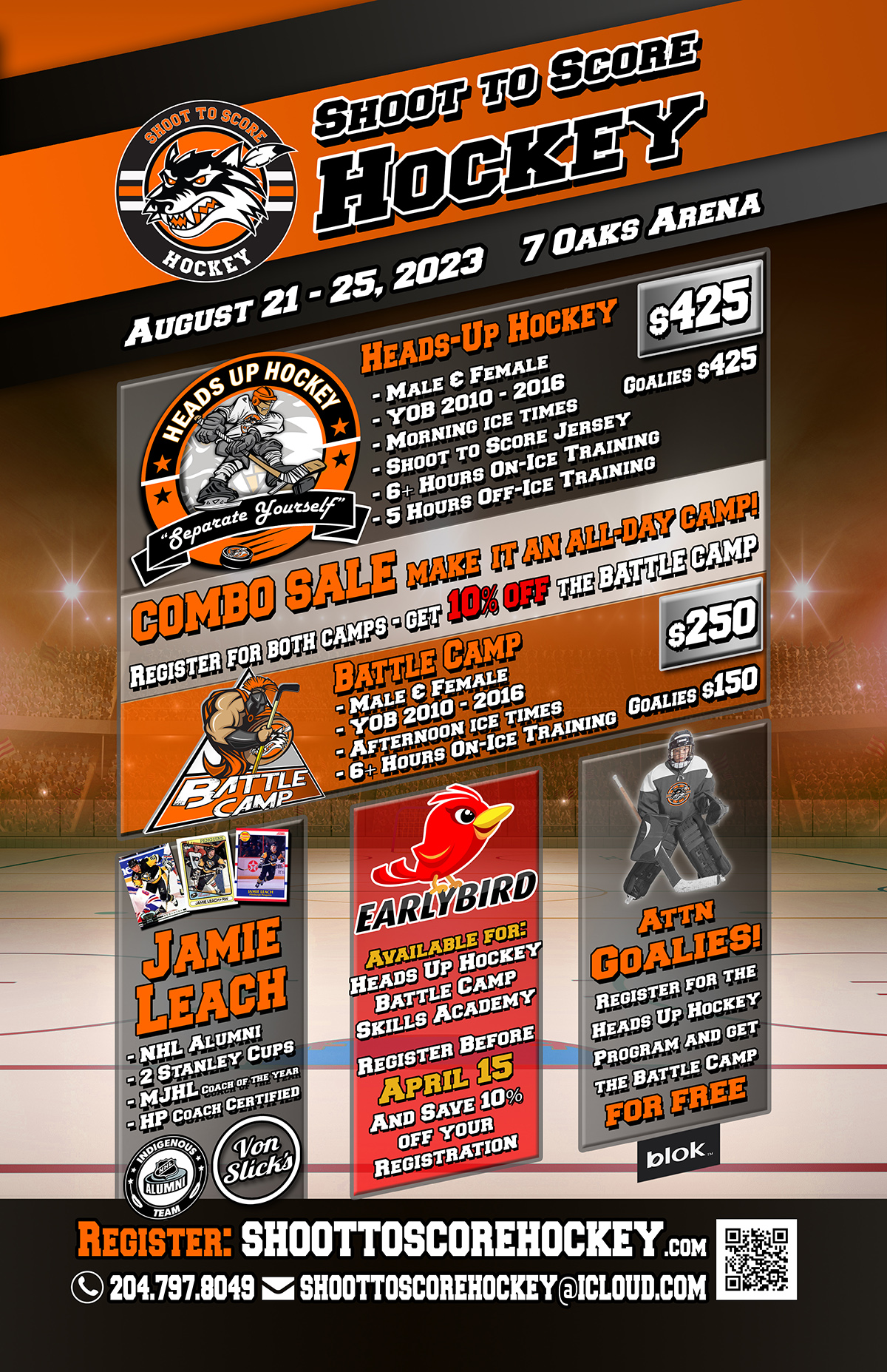 – Compete Level – “Hard work beats talent when talents fails to work hard enough.” Hockey is most fun when you are giving it 100% of your attention and ability. This is why we have added multiple drills to our camp that really engage the player, while still developing their game! More small-area drills, more time spent working hard for possession of the puck, more drills with pressure on the player to make quicker and smarter decisions. All of this is in a high-tempo on-ice session with little down-time to maximize development!